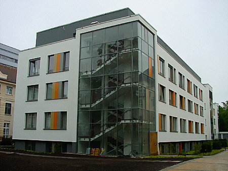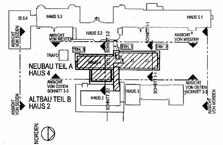 | Umbauten im angrenzenden Altbau Haus 2 Umbau KG und EG teilweise, im KG Funktionsräume, Sozialtrakt, Anbindung an KG Haus 4, Maßnahmen zur nachträglichen WU-Sicherung des KG's, Einbau einer neuen Stahlbetonwanne, Umbauten im angrenzenden Altbau Haus 5. Umbau KG - 3.OG. unter laufendem Betrieb unter Beachtung des Denkmalsschutzes, neue Brandwände, neue Stahlbetondecken, Abbruch tragender Wände und Einbau von Stahlrahmen, neue Wanddurchbrüche, Deckenverstärkungen für höhere Nutzlasten (MRT-Bereich). | |